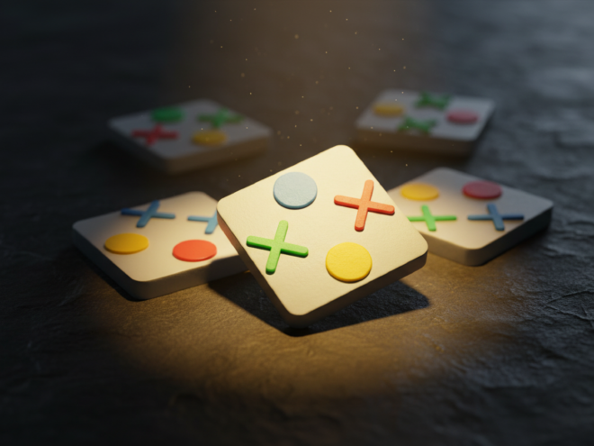 Se trata de un puzzle simple, en tanto que las piezas no tienen bordes que encastrar y por eso complicado, porque a priori pueden ir de cualquier forma. La idea es que la persona que lo intente compruebe por hartazgo la rapidez con la que crece el tiempo promedio de resolución con solo pasar de un simple 2x2 a un 3x3. El efecto de confirmar que un 2x2 se puede armar en un tiempo breve, pero no suele ser así con solo con un 3x3, permite tirar por tierra las expectativas que pueda hacerse el ludócuata de turno. Para los jugadores más resistentes, se puede armar un 4x4, etc.